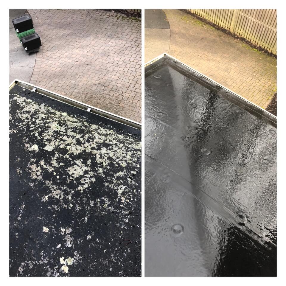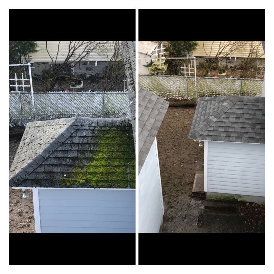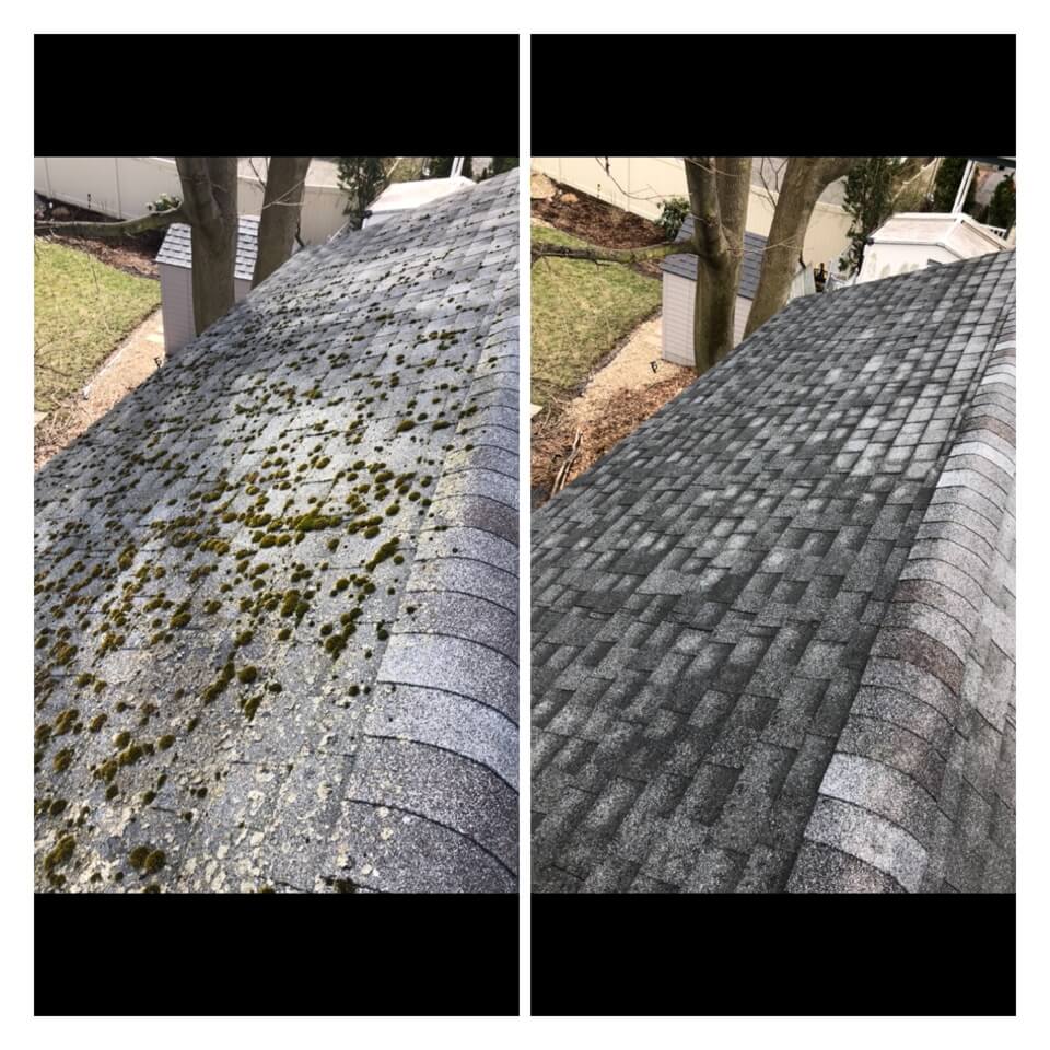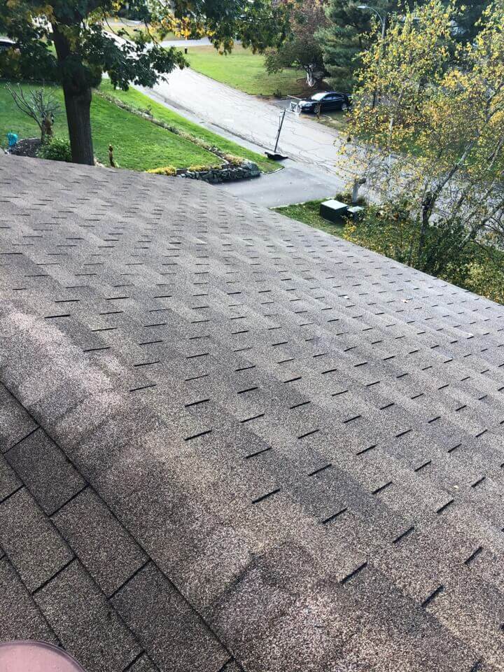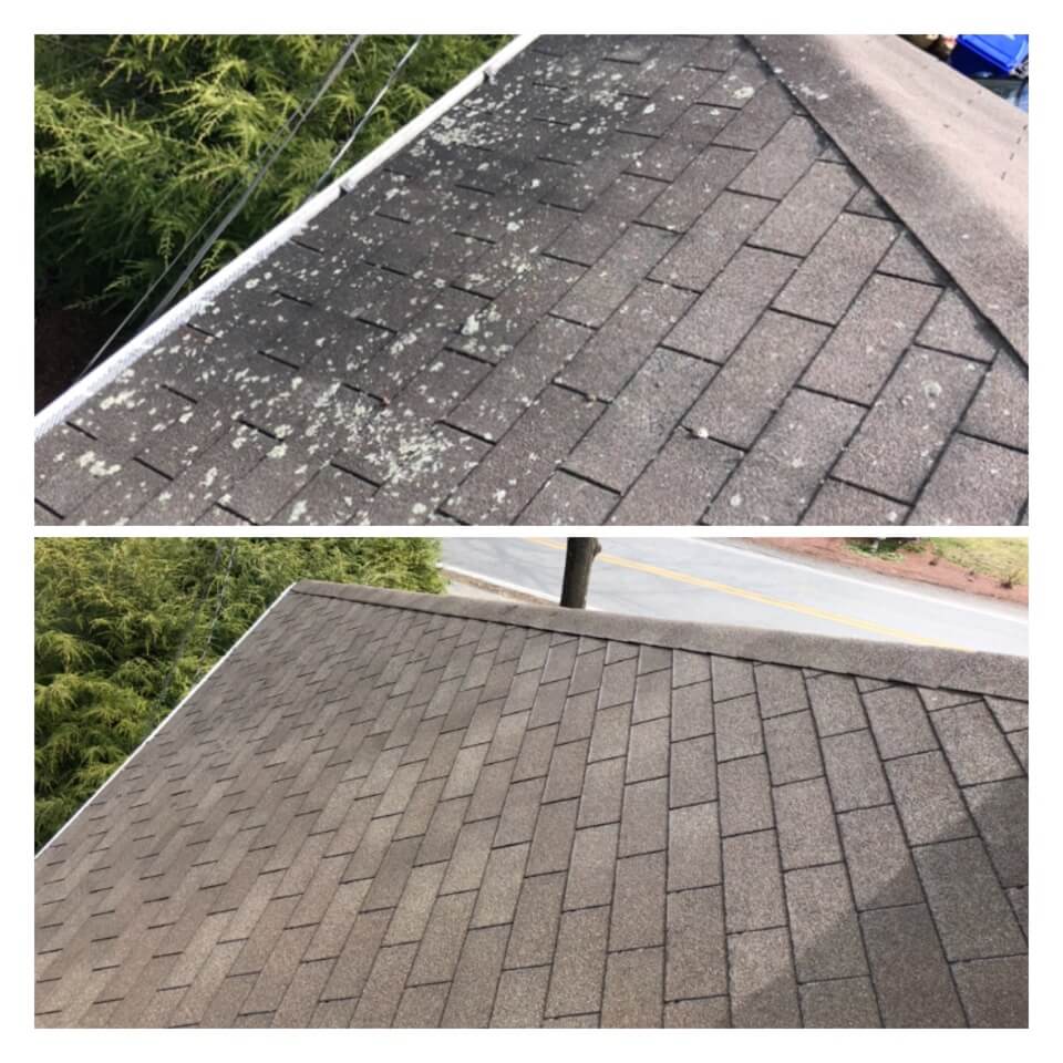HiCleaners is the most experienced company in Chestnut hill, MA that deals with roof washing and roof soft washing. All of our employees are trained to recognize precise solution mixing ratios to provide you with the safest and most effective soft washing service. Roofs are a commonly neglected part of a house due to the fact that most people don’t have ladders to access it, so it is very easy to just leave it alone and forget about problems that may start to arise. Just like many home owners, discoloration and small bits of moss on a roof can be overlooked because of the misconception that it is just aesthetic. However, it isn’t just aesthetic, the moss slowly lifts the granules off the shingles which in turn shorten the life of the shingle. The moss also spreads, just like any bacteria if it is left alone for too long, it can quickly become a problem that spirals out of control. Call HiCleaners for a free quote, we only use the most advanced eco-friendly solutions and equipment to make sure the job is done right, for the safety of the employees, your plants, grass, pets, and children.